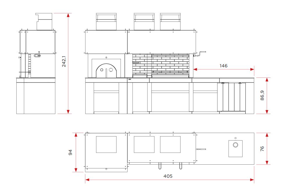 - Medidas: ancho 405 x fondo 93,5 x alto 202 cm.